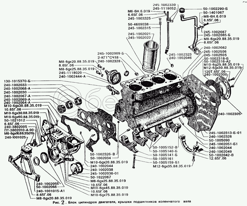 Каталог запасных частей к технике: ЗИЛ-5301. Блок цилиндров двигателя, крышки подшипников коленчатого вала