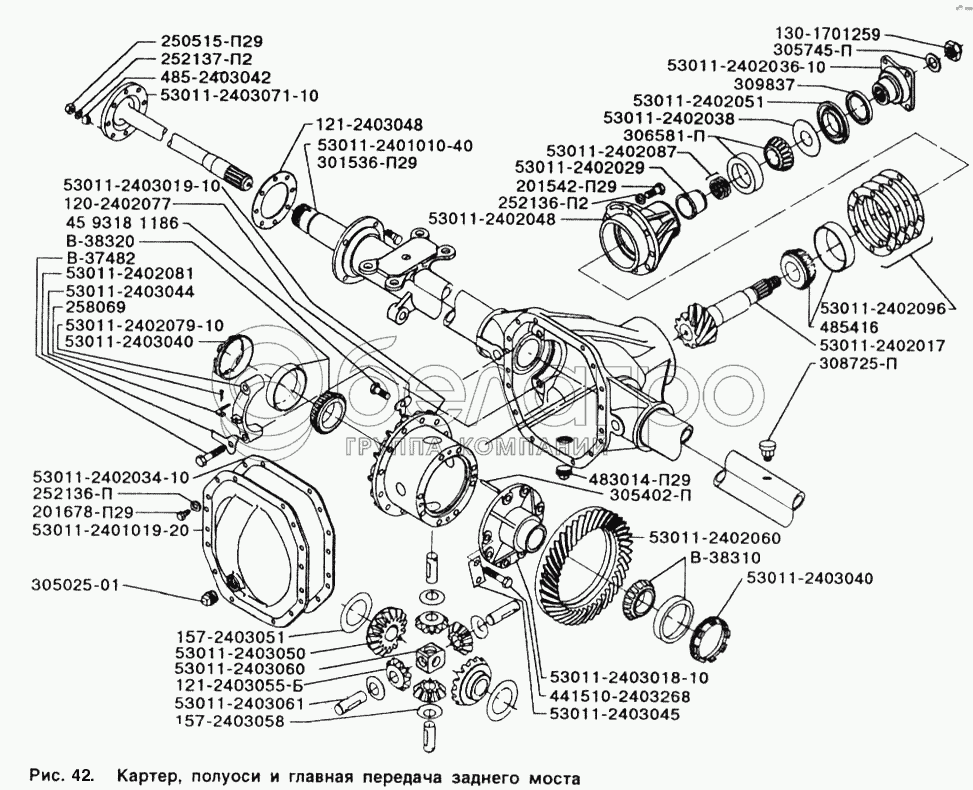 Каталог запасных частей к технике: ЗИЛ-5301. Картер, полуоси и главная передача заднего моста