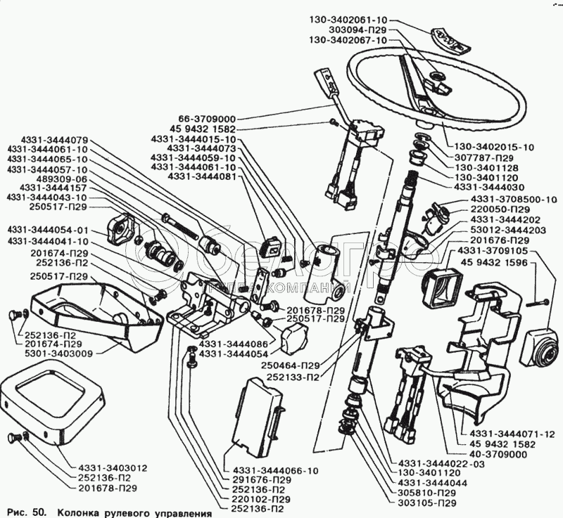 Каталог запасных частей к технике: ЗИЛ-5301. Колонка рулевого управления