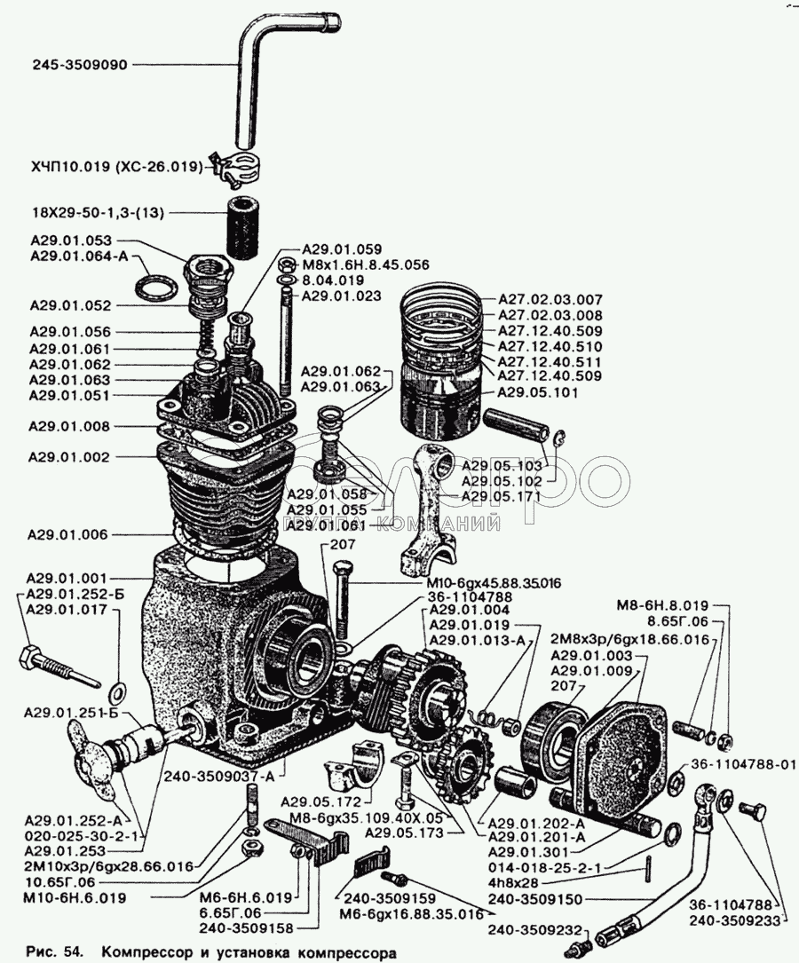 Каталог запасных частей к технике: ЗИЛ-5301. Компрессор и установка компрессора