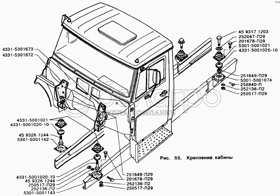Каталог запасных частей к технике: ЗИЛ-5301. Крепление кабины