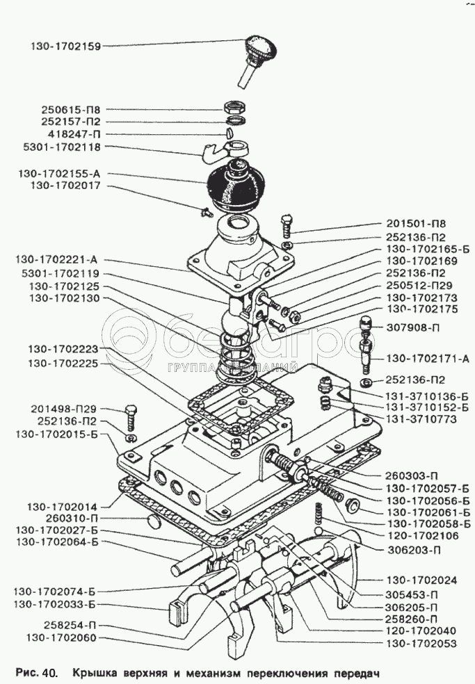 Каталог запасных частей к технике: ЗИЛ-5301. Крышка верхняя и механизм переключения передач