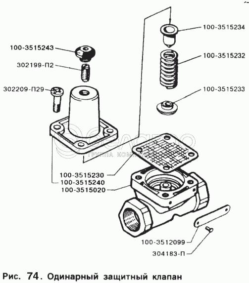 Каталог запасных частей к технике: ЗИЛ-5301. Одинарный защитный клапан