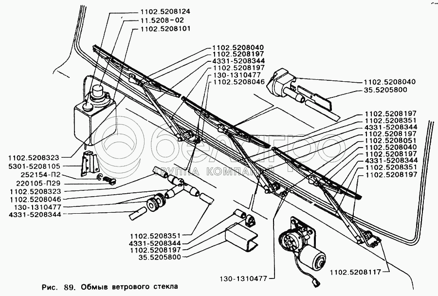 Каталог запасных частей к технике: ЗИЛ-5301. Омыв ветрового стекла