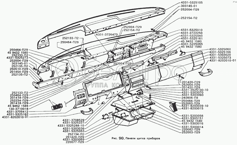 Каталог запасных частей к технике: ЗИЛ-5301. Панели щитка приборов