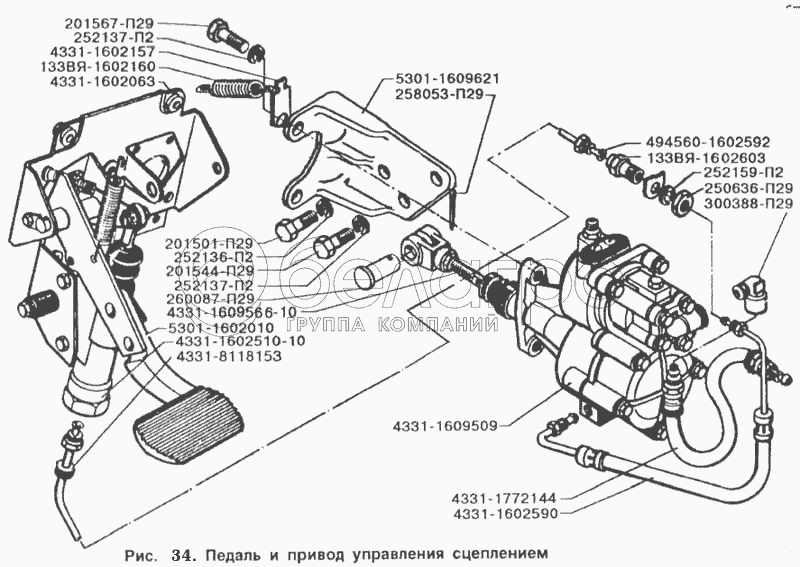 Каталог запасных частей к технике: ЗИЛ-5301. Педаль и привод управления сцеплением
