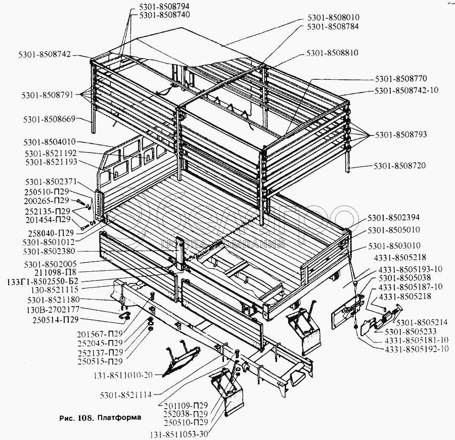 Каталог запасных частей к технике: ЗИЛ-5301. Платформа