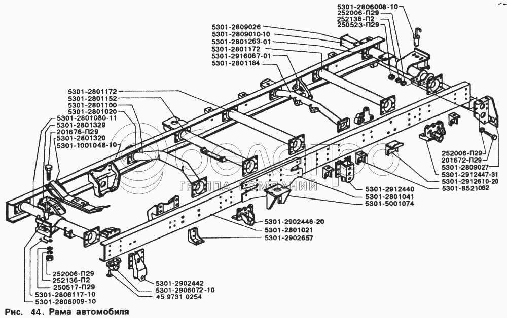 Каталог запасных частей к технике: ЗИЛ-5301. Рама автомобиля
