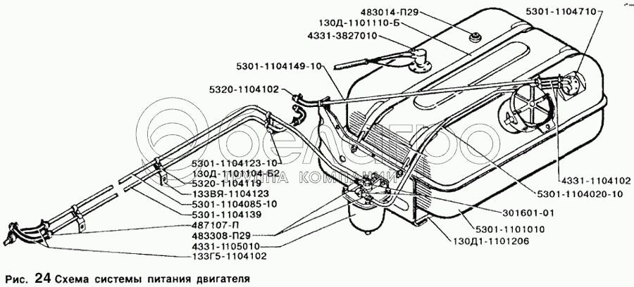 Каталог запасных частей к технике: ЗИЛ-5301. Схема системы питания двигателя