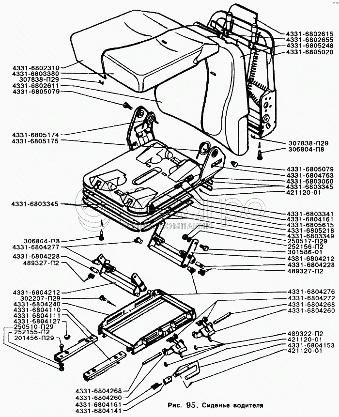 Каталог запасных частей к технике: ЗИЛ-5301. Сиденье водителя