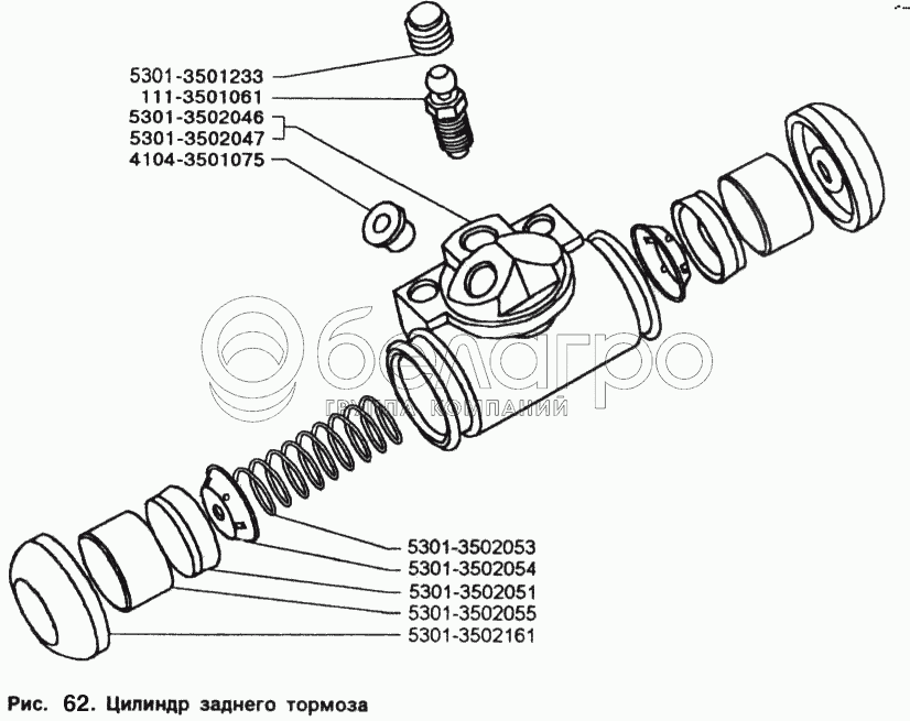 Каталог запасных частей к технике: ЗИЛ-5301. Цилиндр заднего тормоза