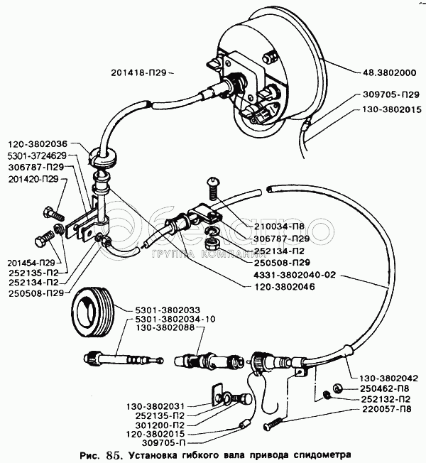 Каталог запасных частей к технике: ЗИЛ-5301. Установка гибкого вала привода спидометра