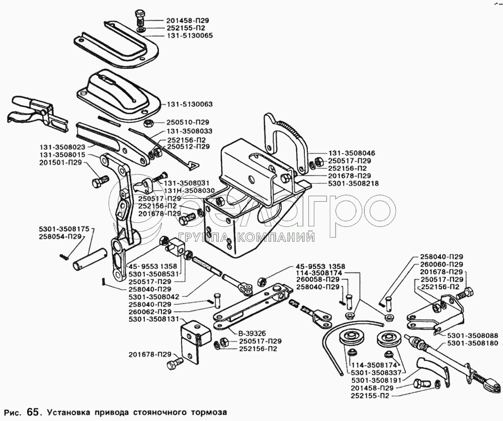 Каталог запасных частей к технике: ЗИЛ-5301. Установка привода стояночного тормоза