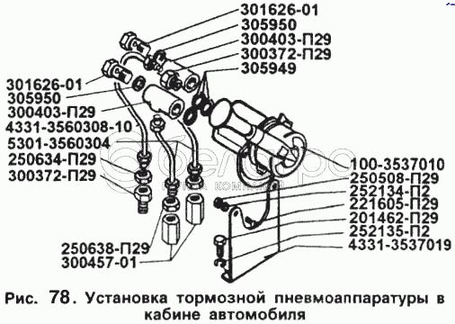 Каталог запасных частей к технике: ЗИЛ-5301. Установка тормозной пневмоаппаратуры в кабине автомобиля