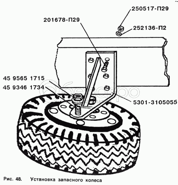 Каталог запасных частей к технике: ЗИЛ-5301. Установка запасного колеса