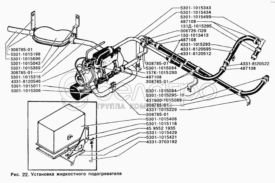 Каталог запасных частей к технике: ЗИЛ-5301. Установка жидкостного подогревателя