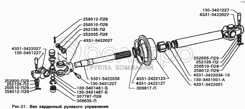 Каталог запасных частей к технике: ЗИЛ-5301. Вал карданный рулевого управления