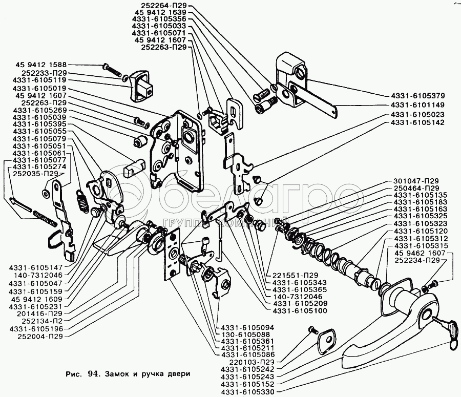 Каталог запасных частей к технике: ЗИЛ-5301. Замок и ручка двери