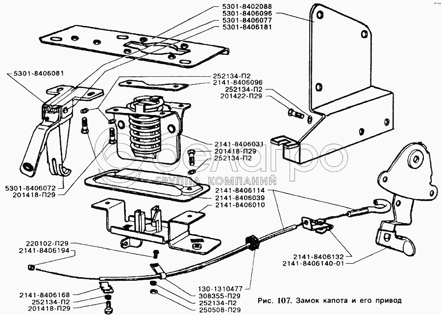 Каталог запасных частей к технике: ЗИЛ-5301. Замок капота и его привод
