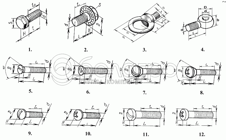 Винт с полукруглой головкой (d=М5, S=8,5, H=3,5, L=12±0,55, l0=12)