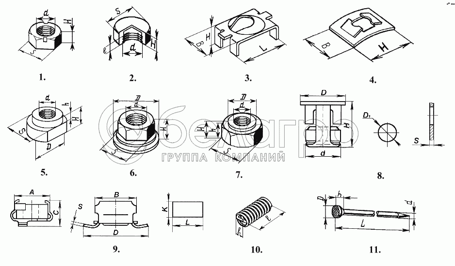Гайкодержатель М8 (A±0,3=15,5, B±0,3=17,5, C±0,3=10,0, D±0,3=27,5, S=0,7, S1=1.0...1.7, K=11)