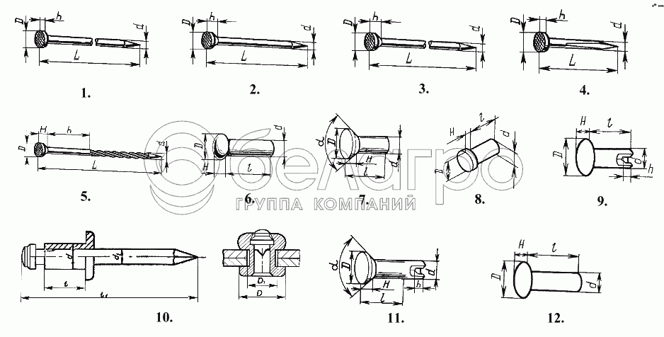 Заклепка с полукруглой головкой (d=12, D=19, H=7,2, l=30)