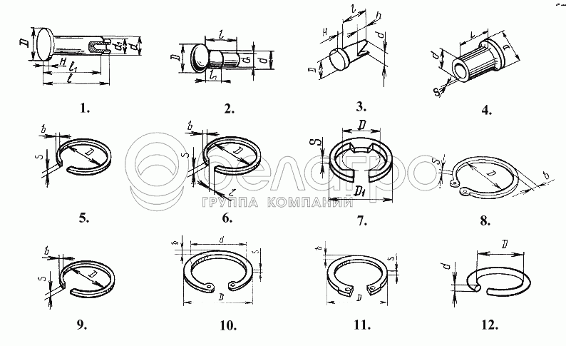 Заклепка специальная (d=8, D=12, d1=7, H=2, l=16, l1=6)