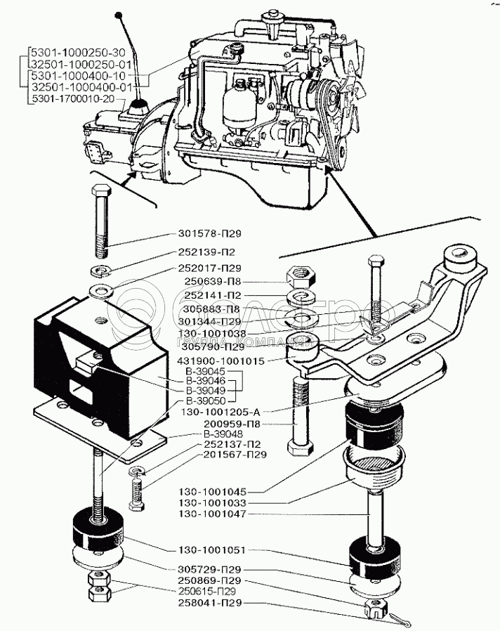 Каталог запасных частей к технике: ЗИЛ-5301 (2006). Двигатель и его подвеска
