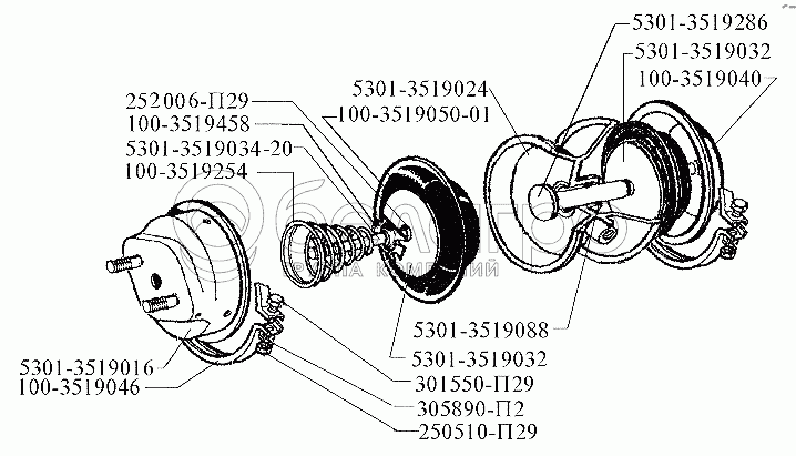 Каталог запасных частей к технике: ЗИЛ-5301 (2006). Двухполостная пневмокамера