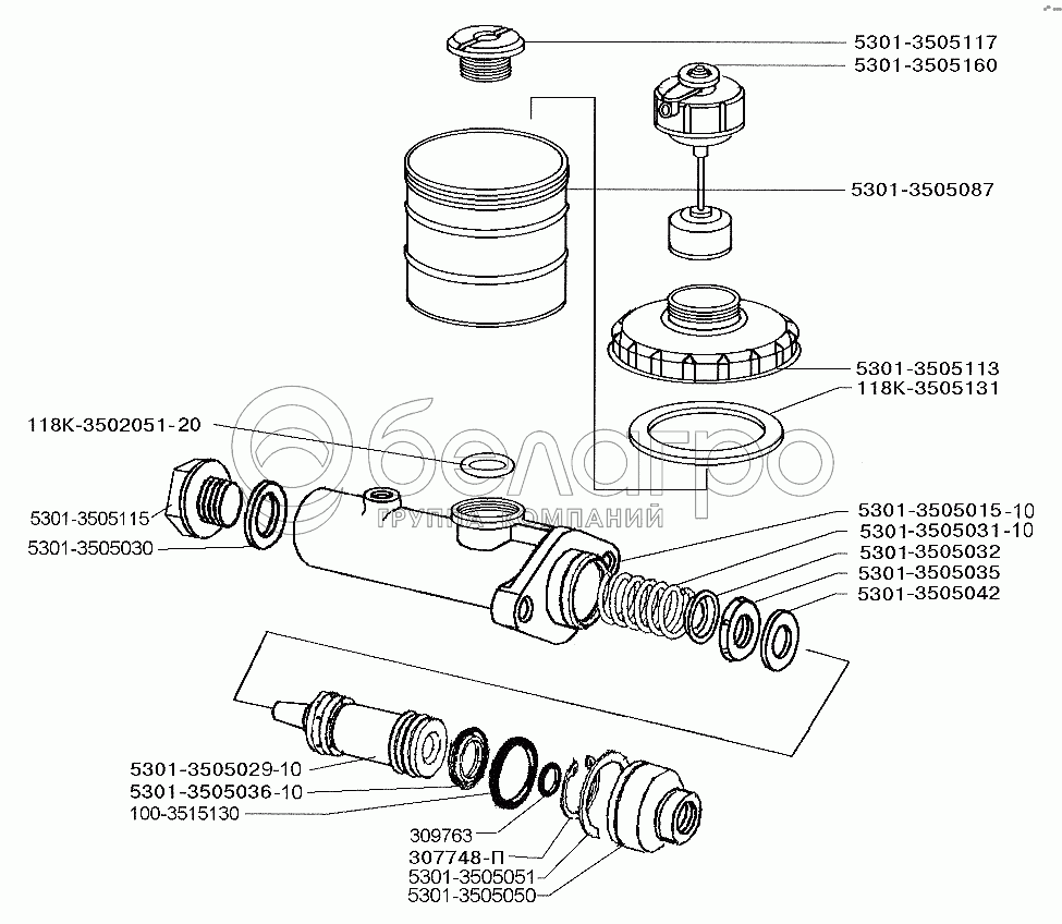 Каталог запасных частей к технике: ЗИЛ-5301 (2006). Главный цилиндр гидротормозов