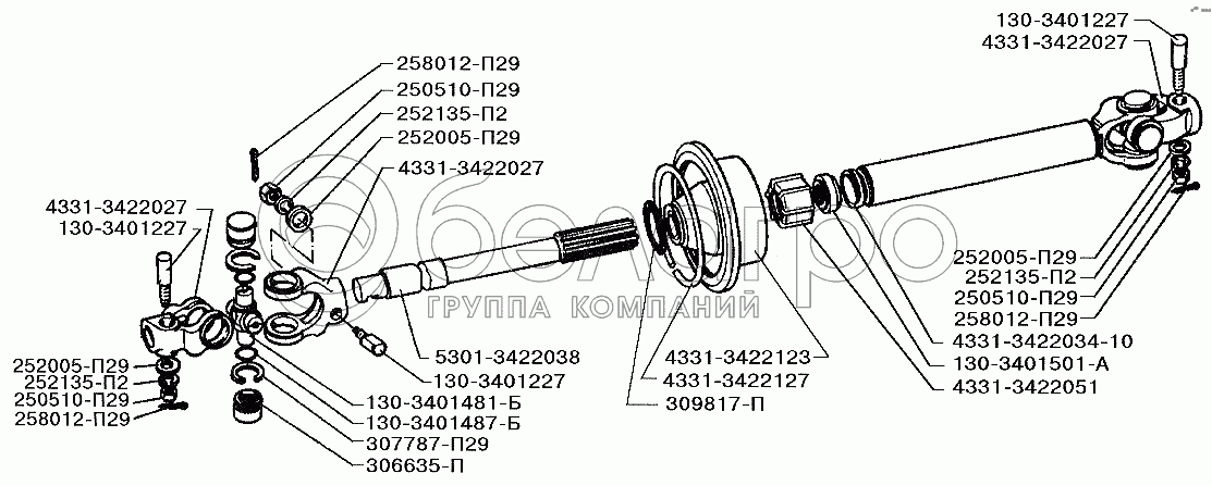 Каталог запасных частей к технике: ЗИЛ-5301 (2006). Карданный вал рулевого управления
