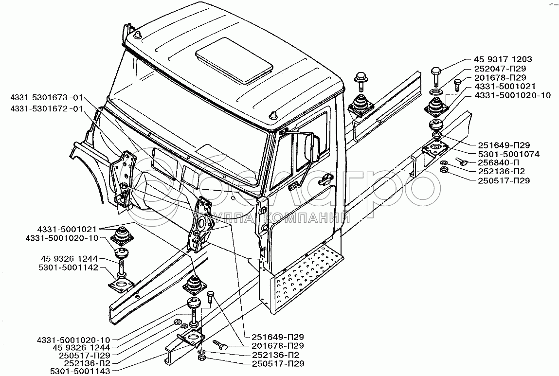Каталог запасных частей к технике: ЗИЛ-5301 (2006). Крепление кабины автомобиля ЗИЛ-5301