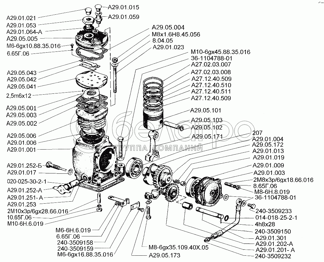 Каталог запасных частей к технике: ЗИЛ-5301 (2006). Пневмокомпрессор и его установка