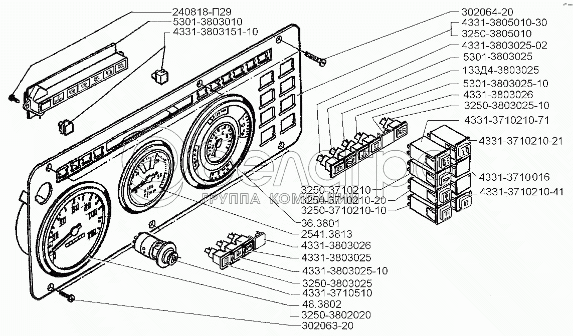 Каталог запасных частей к технике: ЗИЛ-5301 (2006). Щиток приборов