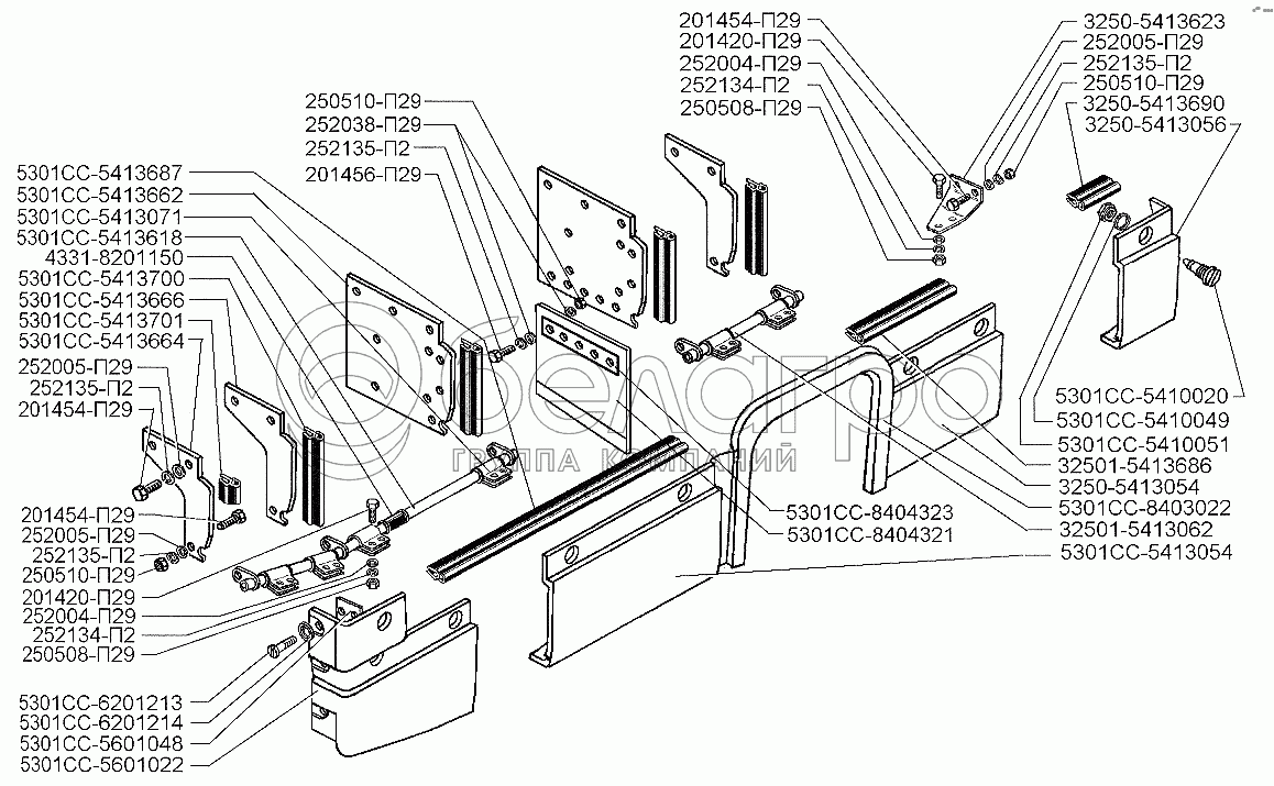 Каталог запасных частей к технике: ЗИЛ-5301 (2006). Установка люков боковин автобуса