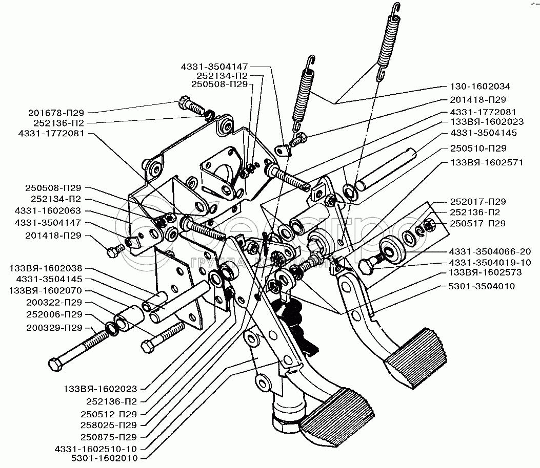 Каталог запасных частей к технике: ЗИЛ-5301 (2006). Установка педалей сцепления и тормоза