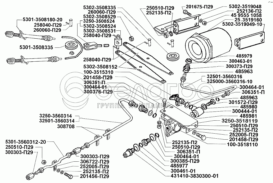 Каталог запасных частей к технике: ЗИЛ-5301 (2006). Установка привода стояночного тормоза