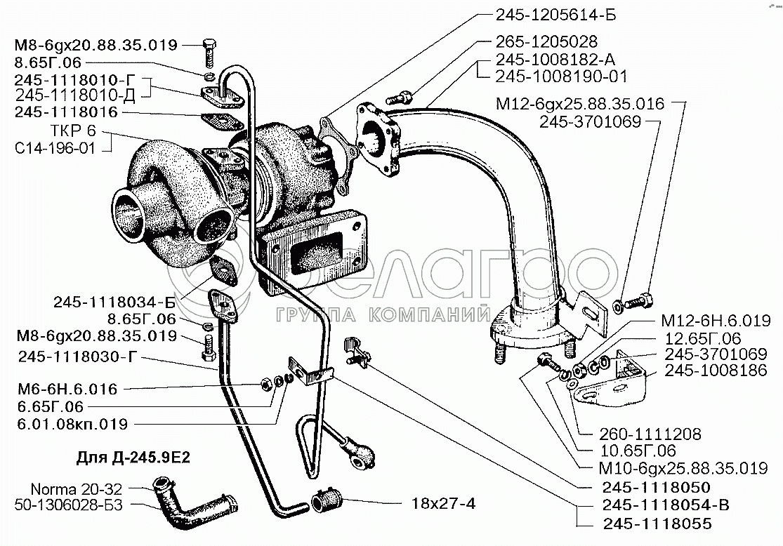 Каталог запасных частей к технике: ЗИЛ-5301 (2006). Воздухоподводящий тракт и маслопроводы турбокомпрессора