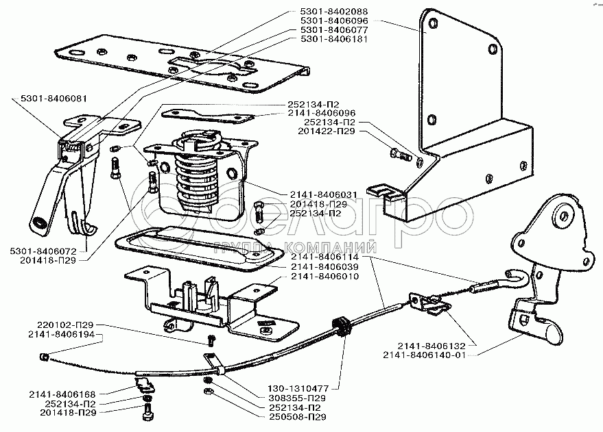 Каталог запасных частей к технике: ЗИЛ-5301 (2006). Замок капота и его привод