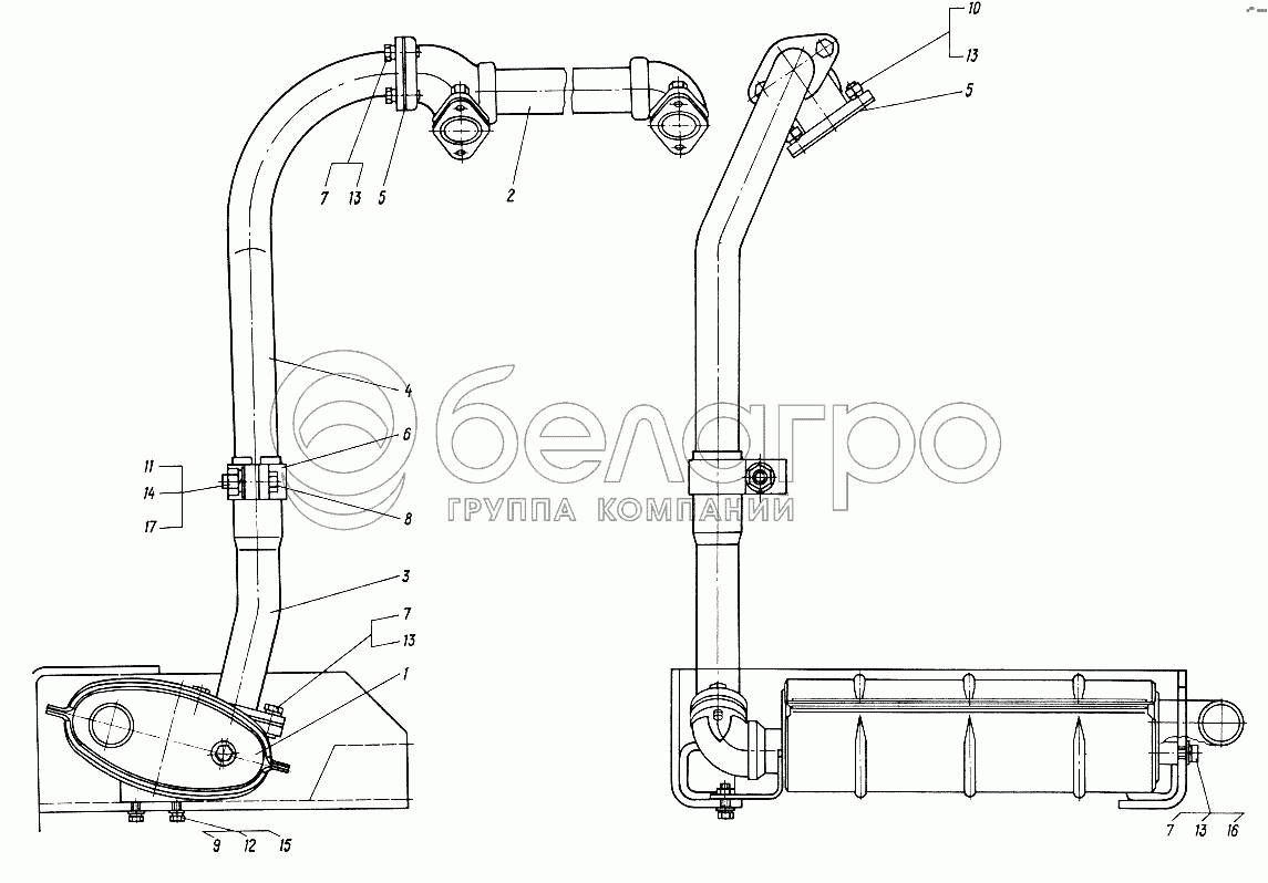 Каталог запасных частей к технике: ХТЗ Т-012. Глушитель с коллектором