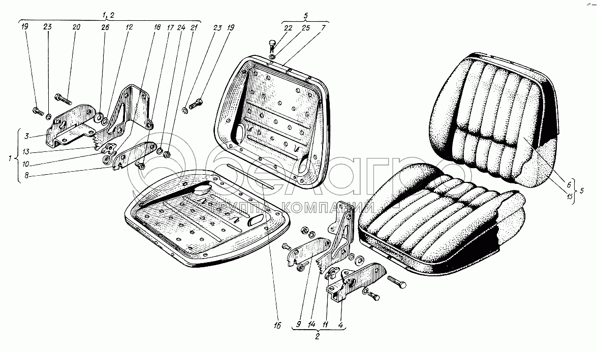 Каталог запасных частей к технике: ХТЗ Т-012. Сиденье