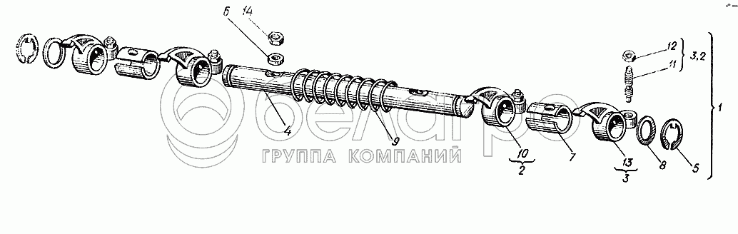 Каталог запасных частей к технике: ХТЗ Т-012. Вал с коромыслами