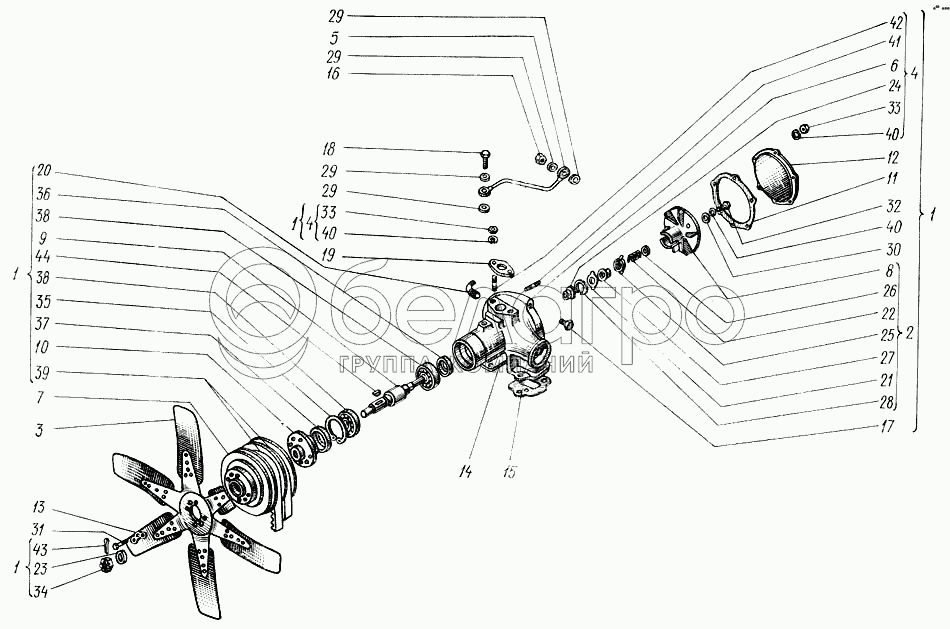 Каталог запасных частей к технике: ХТЗ Т-150. Насос водяной