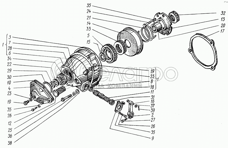 Каталог запасных частей к технике: ХТЗ Т-150. Редуктор пускового двигателя (корпус)