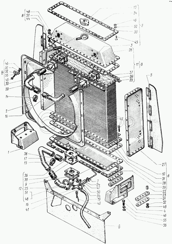 Каталог запасных частей к технике: ХТЗ Т-150. Система охлаждения дизеля