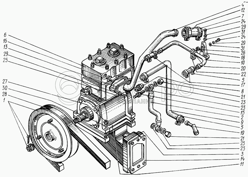 Каталог запасных частей к технике: ХТЗ Т-150. Установка компрессора