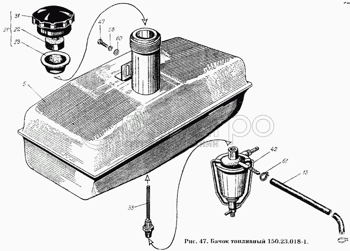 Каталог запасных частей к технике: ХТЗ Т-150К. Бачок топливный 150.23.018-1