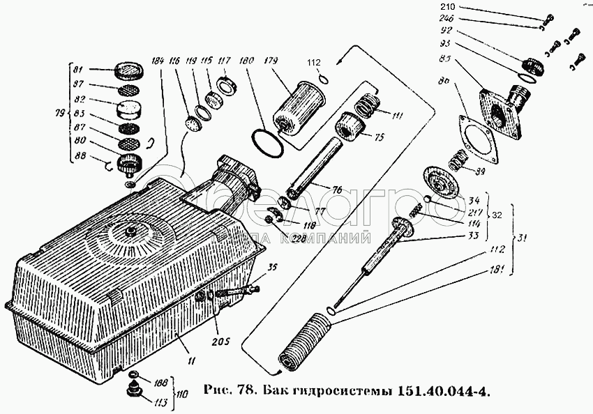 Каталог запасных частей к технике: ХТЗ Т-150К. Бак гидросистемы 151.40.044-4
