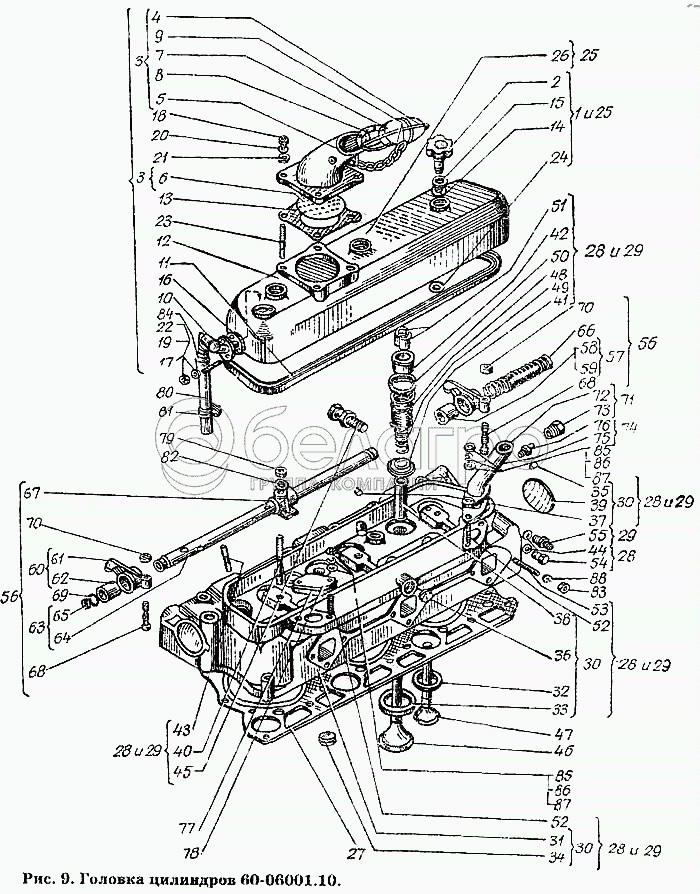 Каталог запасных частей к технике: ХТЗ Т-150К. Головка цилиндров 60-06001.10