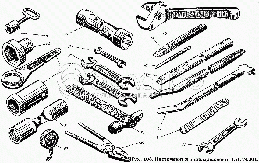 Каталог запасных частей к технике: ХТЗ Т-150К. Инструмент и принадлежности 151.49.001
